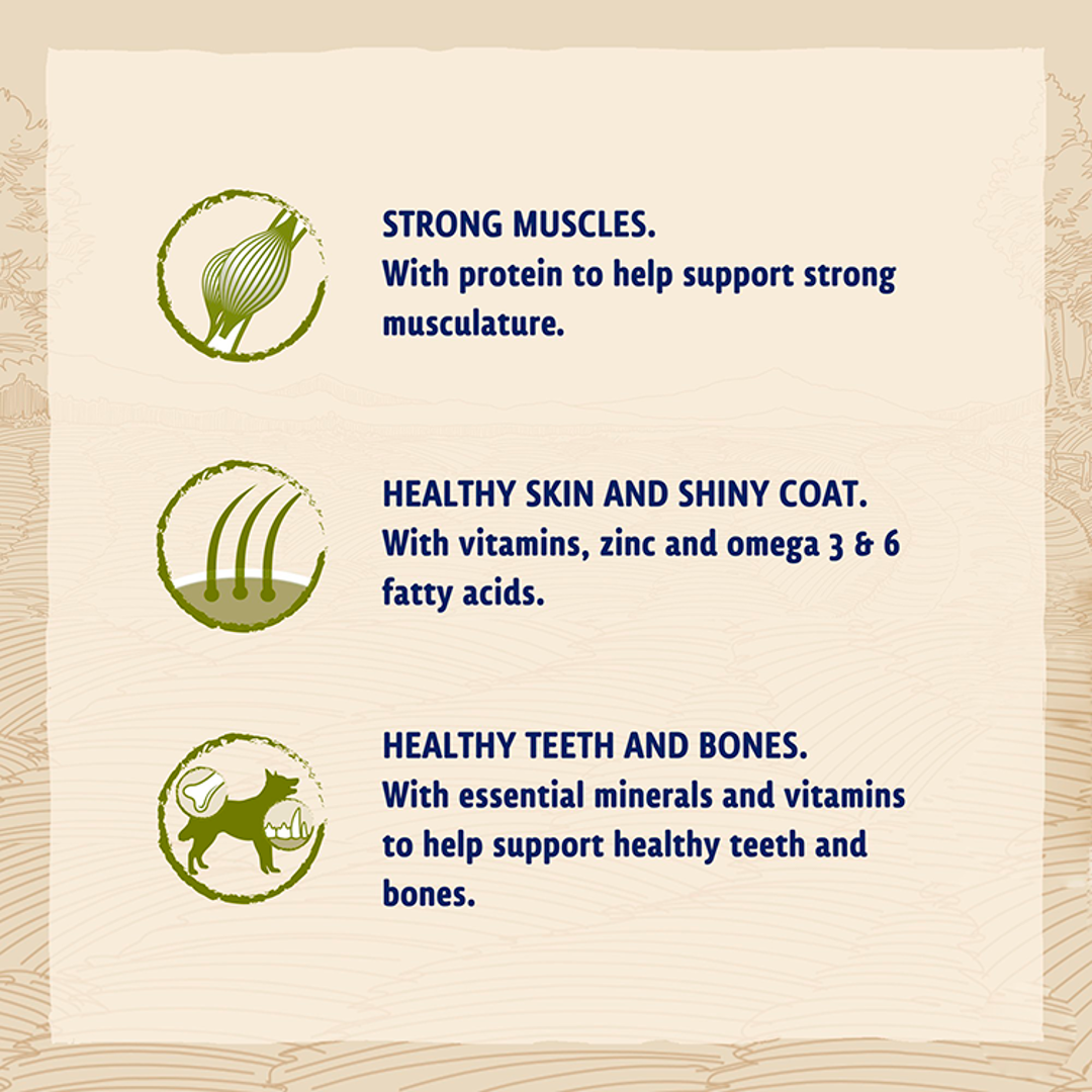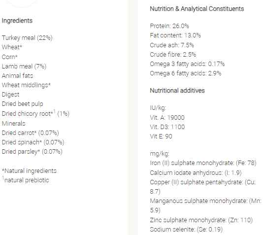 100% complete food for adult dogs. With Turkey and Lamb as a natural source of protein, carefully balanced with wholegrain cereals and rice to promote ideal body condition.