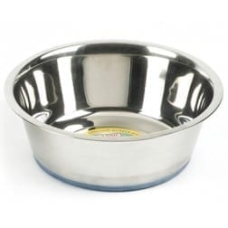 1600ml Classic Non-Slip Stainless Steel Bowl Manufactured with a fused non-skid rubber rim. The bowls are safe to be cleaned in a dishwasher, and are manufactured to be tough and strong. Non-Slip Bowl Design High Quality Stainless Steel Hygienic & Easy To Clean Does Not Absorb Food Odours