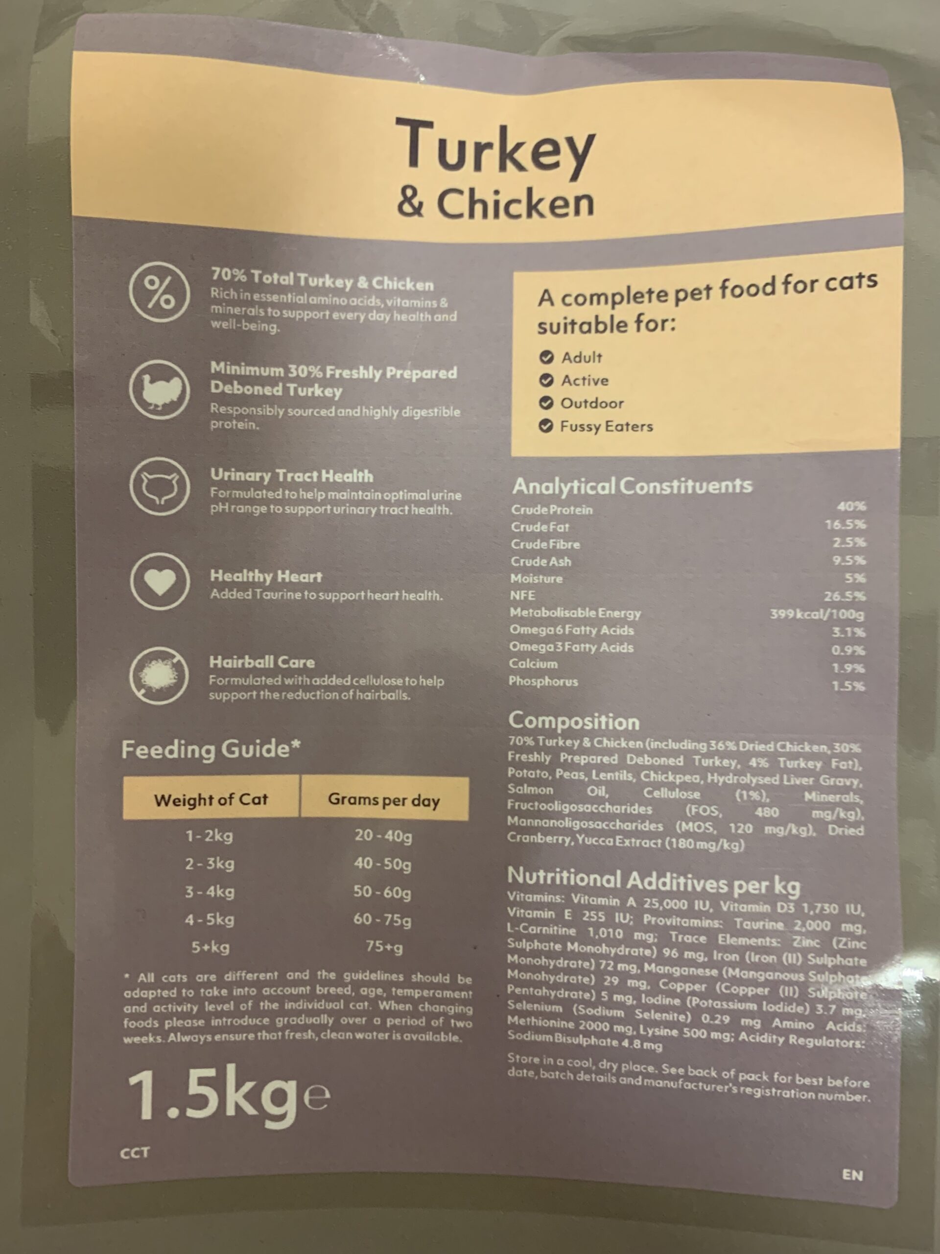 Cooke’s Adult Cat Turkey and Chicken 1.5kg