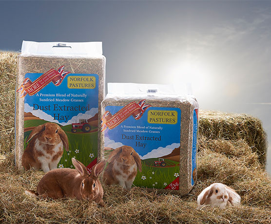 Norfolk Pastures use only the best varieties of grasses to produce their hay, they consist of Rye, Timothy and Cocksfoot and various meadow grass, which are harvested in mid-summer when they are lush, green and near to seeding, it is then naturally dried in the sun after cutting, this helps to retain as many nutrients as possible. It is then stored in dry barns until it is time to be packed.