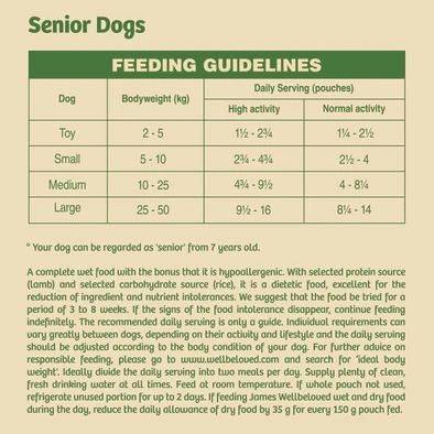 James Wellbeloved Dog Senior Pouch Lamb 90g x 12