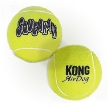 The KONG AirDog Squeakair Ball combines two classic dog toys the tennis ball and the squeaker toy to create the perfect fetch toy. Our durable, high-quality Squeakair tennis ball will not wear down a dogs teeth. Its made with a special nonabrasive felt, compared to the abrasive material on normal tennis balls.