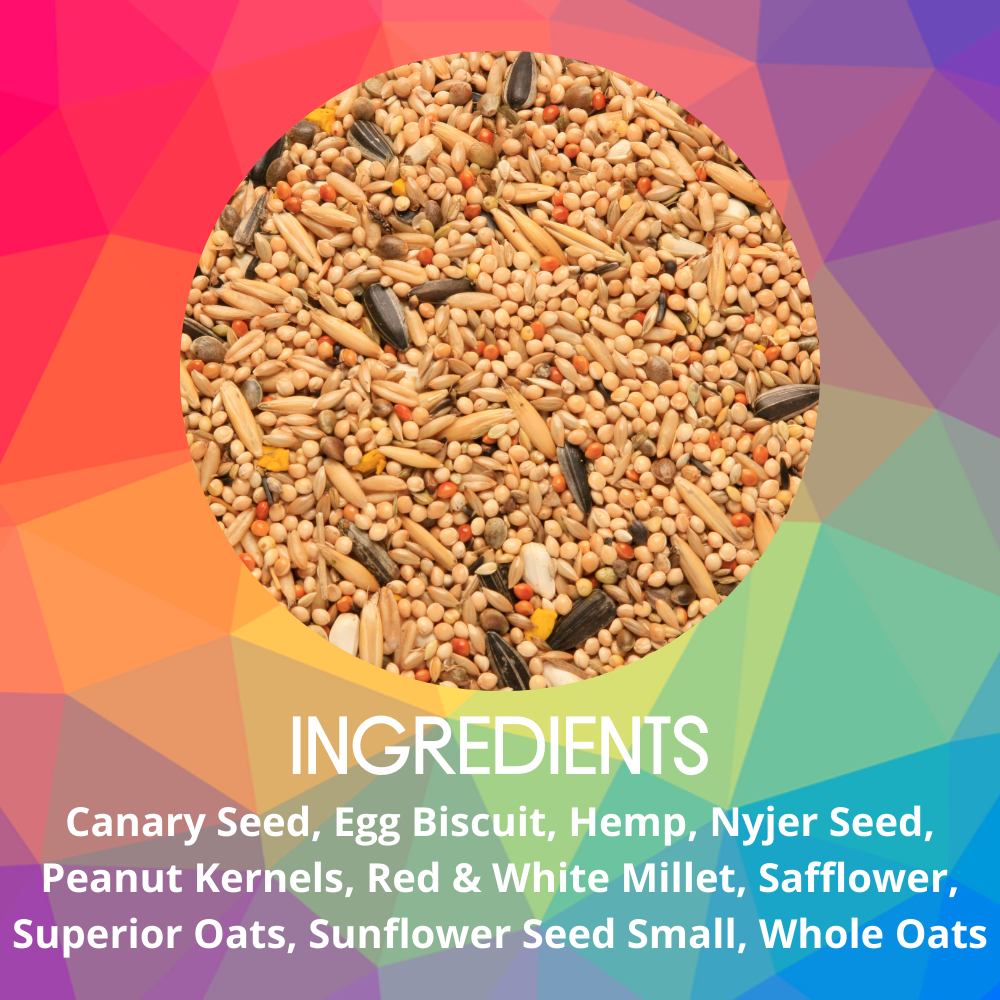 - Blended with hemp seeds, making it an excellent source of calcium, iron and potassium for larger birds.